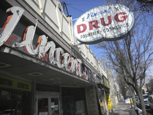 One thing that Old Town Midvale lacks, sadly, is a drug store. Vincent Drug, a stalwart for years and a featured part of the movie The Sandlot, is closed. Its owner retired and the classic drug store with its soda fountain and narrow aisles looks as if he just walked away one day. A few products still can be seen through the front windows on shelves but the floor is littered with paper. It is as if an era ended, kind of like when Woolworth's closed in Sugar House or Kress's shut down on Main Street in Salt Lake.