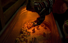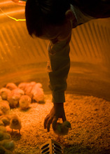 Ben Tureson picks up a chick from its enclosure in the Savage Livery Stable during Baby Animal Season at This is the Place Heritage Park in Salt Lake City on April 1, 2013. The event will continue until May 24.