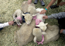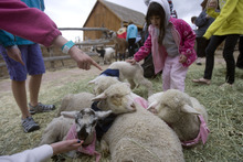 Park visitors pet sheep and lambs in the Petting Corral during Baby Animal Season at This is the Place Heritage Park in Salt Lake City on April 1, 2013. The event will continue until May 24.