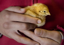 Volunteer Keegan Tureson holds a baby chick in the Savage Livery Stable during Baby Animal Season at This is the Place Heritage Park in Salt Lake City on April 1, 2013. The event will continue until May 24.