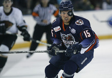 Grizzly forward Chris Donovan celebrates his first period goal on penalty shot to give the Grizzlies a 1-0 lead after one period in Game 3 of the ECHL playoffs at the Maverick Center, Friday, April 5, 2013.