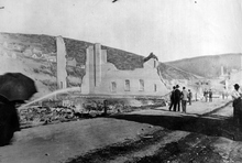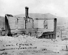 The Congregational Church in Park City in ruins following the fire of 1898.