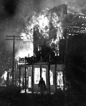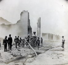 A fire engine company from Salt Lake battles flames in Park City's opera house during the devastating