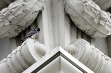 Back in 2008, all three of the surviving eyasses, as the peregrine tots are called, died from a bacterial infection. Other years, a team of volunteers gets caught up in the gather to track the travails of the nesting family, from the laying of eggs to their hatching, the fledging and, with some luck, the young's successful departure from their nest.