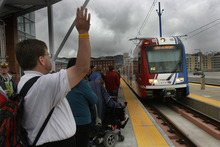 The line, which officially opens Sunday, allowed the public to preview the route Saturday with free rides from 10 a.m. to 10 p.m. and mini "celebrations" complete with face painting, music, clowns, balloon artists, bounce houses, games, animals and food at five new stops along the North Temple line.