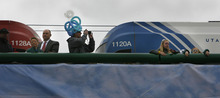 But the view from the train Saturday was not exactly picturesque. Clouds hung low over mountain peaks as the shuttle sped by car washes, lumber yards, motels and empty lots.
