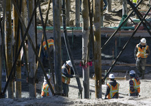 On Thursday, crews were pouring concrete for the base of the new foundation. Eventually, foundation walls will rise between the pillars holding up the building.