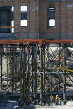 Since the groundbreaking for the temple in May, crews have removed some bricks from the interior and installed concrete to stabilize the masonry walls. The steel girders, which swaddled the walls after the blaze, were removed, and 146 pilings were driven 90 feet into the ground around the building.