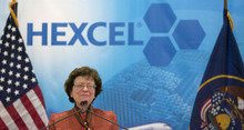 Hexcel manufacturers carbon fibers used in high-strength composite structures in commercial aerospace, space and defense and industrial applications. The company, which employs some 700 people at its West Valley plant, is one of the key cogs in the state's growing composites industry drawing praise from Blank as an example of government's strategic role in nurturing the private sector.