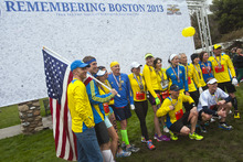 And then, just as it had as the race began, Neil Diamond's "Sweet Caroline" began playing on the loudspeaker. Rachel Moody, Paul Fulton and a dozen other Boston runners hit the finish line in 4 hours, 9 minutes, marking the moment in the Boston race when two improvised bombs detonated five days earlier.