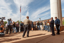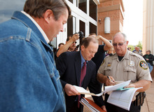 Immediately after the auction Jessop and his attorney Mark James huddled on the courthouse steps with sheriff's deputies, signing papers. James said the auction turned out as he expected, though he and Jessop would have liked to have seen other bids on the property. James explained that money would have been easier for Jessop to deal with than land.