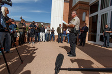 Both bids were communicated to sheriff's deputies before the auction began and Jessop did not speak during the event. The auction started at 10 a.m. just outside the main entrance of the St. George courthouse. It finished minutes later when there were no other bids for the property. The crowd included numerous members of the Hildale community, as well as media and police.