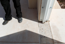 Willie Jessop on the steps of a home intended for the family of Warren Jeffs in Hildale, Fr