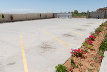 The walled-in parking lot at the former FLDS Bishop's Storehouse in Hildale, Friday April 26, 2013. The property was purchased by Willie Jessop who spent the day allowing former followers to see the inside of a compound they had previously not been allowed to enter.