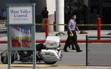 Police presence at the scene of the shooting Monday was heavy and much of the area, including a nearby Utah Transit Authority TRAX station, was initially cordoned off. A TRAX train, unable to proceed, was emptied of passengers who were transported to the next stop on the line by bus until the station reopened at 9:10 a.m.
