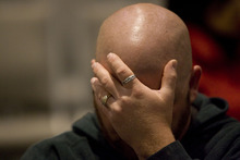 Shawn Sellers prays Thursday during a worship service for the 62nd National Day of Prayer at Calvary Chapel of Salt Lake. The event featured live-streaming video from the National Day of Prayer event, a free breakfast and a worship service.