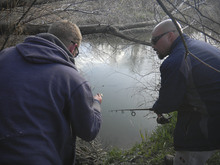 They use soft white bread fished right off the bottom. When they hook a big carp, it's often a two-person operation to bring one to shore.