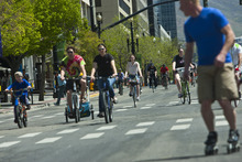 Hundreds of smiling faces brought a new kind of life to downtown's 300 South on Saturday as Salt Lake City kicked off its first Open Streets festival on a picture-perfect spring day.
