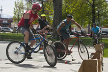 The Open Street fest coincided with Tour de Brewtah, a bicycle excursion that stopped at various breweries around the city. Many of the participants sported multicolored tutus.