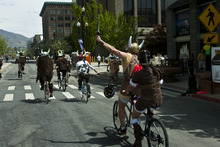 The festival attracted a lot of cyclists decked out in "Star Wars" costumes, declaring, "May the Fourth be with you."