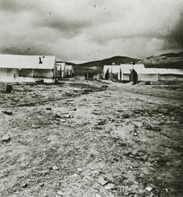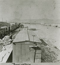 Promontory is seen in this photo from May, 1869. The Trancontinental Railroad was completed here in a ceremony