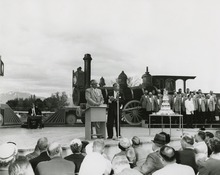 A monument is unveiled at the Golden Spike National Historic Site in this photo from May, 1959.