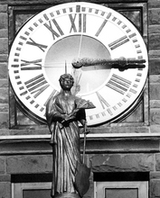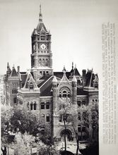 A detail shot of the clock tower on the Salt Lake City and County Building on 400 S. State St. The building was originally constructed by Freemasons between 1891 and 1894. Construction of the building was riddled with controversy. During the late 19th and early 20th centuries the City and County Building was the symbol of non-Mormon citizens' open defiance of The Church of Jesus Christ of Latter-day Saints. It was designed to rival the Salt Lake Temple as the city's architectural centerpiece. It is even thought that the building's clock tower and statues were designed to mimic the temple's spires and statue of the angel Moroni.