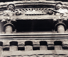 Beehive detail on the west side of the Salt Lake City and County Building on 400 S. State St. The building was originally constructed by Freemasons between 1891 and 1894. Construction of the building was riddled with controversy. During the late 19th and early 20th centuries the City and County Building was the symbol of non-Mormon citizens' open defiance of The Church of Jesus Christ of Latter-day Saints. It was designed to rival the Salt Lake Temple as the city's architectural centerpiece. It is even thought that the building's clock tower and statues were designed to mimic the temple's spires and statue of the angel Moroni.