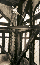 Steve Thunell vacuums beams inside the tower of the Salt Lake City and County Building on 400 S. Sta