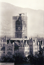 The Salt Lake City and County Building on 400 S. State St., seen here in 1989, was the first existing historic site in the world to be retrofitted with a base isolator system to prevent earthquake damage. The building was originally constructed by Freemasons between 1891 and 1894.