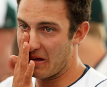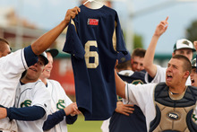 Orem • A group of Warriors huddled along the first-base line and started their roar. They couldn't quite contain the emotion suddenly befallen on them as they held a navy blue jersey to the sky. The jersey had the No. 6 on the back and read "Warriors" across the chest.