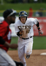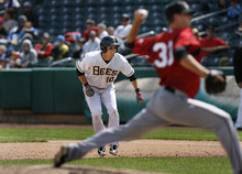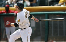 But he's not with the Salt Lake Bees as a cultural oddity. On Sunday afternoon, Oeltjen found his way on base by a walk, a hit, and a strikeout on a passed ball. He stole two bases, and batted in a run as the Bees notched an 8-7 extra-innings win.
