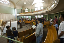 But the walls are brick, not stone, says Roberts, an expert in historic preservation, which makes it more Victorian. And the seating is designed for intimacy, he says, so "everyone sees everyone else, and it allows for a sense of spiritual community."