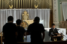 "It is not the people who elect the apostle," Bautista says in Spanish, with his sons, Ruben Jr., 19, and Abdi, 18, as translators. "They are chosen directly by God like St. Paul."