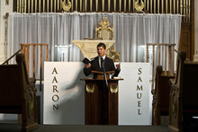 The day's third prayer service occurs at 6:30 p.m. and opens with songs of gratitude by two men and then two women. The two groups sing separately and unaccompanied.