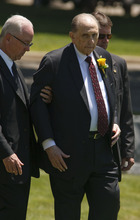 LDS Church President Thomas S. Monson is assisted to the gravesite of his wife, Frances J. Monson, who was laid to rest in the Salt Lake City Cemetery, Thursday, May 23, 2013. Frances Monson died Friday at age 85 after having been hospitalized for several weeks. The Utah-based Church of Jesus Christ of Latter-day Saints said she died of causes incident to age.