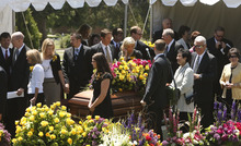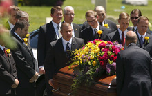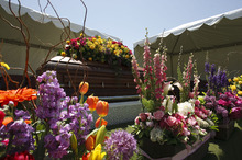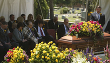 Monson family members remove their boutonnieres to place on the casket of Frances J. Monson, wife of LDS Church President Thomas S. Monson, who was laid to rest in the Salt Lake City Cemetery, Thursday, May 23, 2013. Frances Monson died Friday at age 85 after having been hospitalized for several weeks. The Utah-based Church of Jesus Christ of Latter-day Saints said she died of causes incident to age.