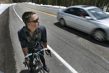 Bartlett, a transfer student at Utah Valley University from his home state of Wisconsin, wheeled his bike up toward the 10,759-foot summit underneath a frosty Bald Mountain shedding layers in the sub-50-degree weather.