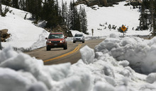 While Utah is working on its 2013 green, the High Uintas along Mirror Lake Highway still have snow packed about 3 feet high on each side near Bald Mountain Pass.
