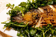 They'd been presented with a grilled, whole sea bass on a platter, stuffed with dill and surrounded by a bed of wild watercress. Shimmering and beautiful, but what do they do with the branzino's head? How do they cut around the bones?