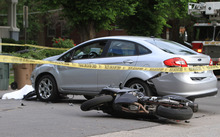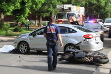 The motorcyclist, a man in his 40s, died at the scene, said Lt. Josh Scharman. Police are waiting to identify the man until they notify his next of kin.