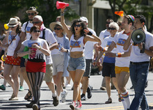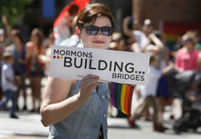 It was the second year grassroots group Mormons Building Bridges marched in the parade, making a symbolic show of support from the religious community along with marchers from Unitarian and Episcopalian denominations.