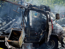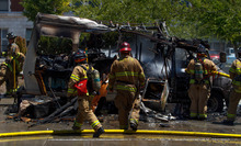 Harvey Dunn installed a new fuel pump in the mini-motor home in which he lives, then he started the engine Friday afternoon and the vehicle burst into flames.