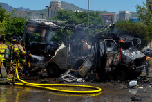 Soon after, Salt Lake City firefighters rushed to the scene, near 200 South and 500 West, and extinguished the flames within two minutes.