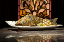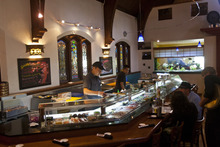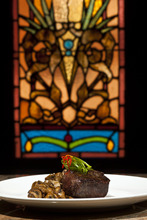 Something familiar to past patrons is the remarkable restaurant interior. Ichiban still calls a beautiful Lutheran church home, as it has for nearly two decades. Dating back to 1894, the main dining room immediately draws the gaze upwards past glowing stained glass windows to lofty beam-cradled ceilings. It's an imposing space with the potential to be one of the city's grandest dining environments.