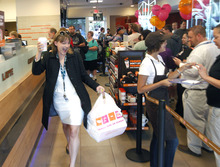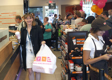 The long-awaited opening of the initial Utah Dunkin' Donuts began with free samples and other goodies for those first in line.