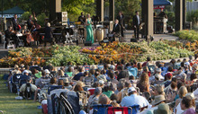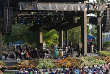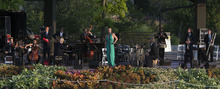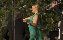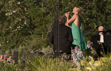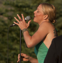 Storm Large, the lead singer of Pink Martini, mesmerized the capacity crowd at Red Butte Garden on Tuesday evening with not just her lyrics, but also her stage presence. For a band that refers to itself as "a little orchestra," Large is anything but little. Her voice and constant dancing onstage commanded the Portland-based band as she seamlessly moved between samba mixes, swing jazz tunes and a little bit of humor.