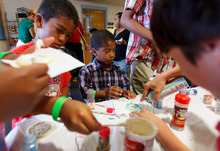Children decorated cookies as the Salt Lake Board of Realtors held its annual Christmas in July event at The Road Home homeless shelter in Salt Lake City on Friday, July 12, 2013.