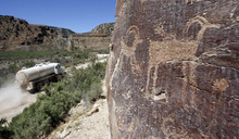 Officials say the paving project is needed to reduce maintenance costs and improve access to approved gas-drilling projects held by the Bill Barrett Corp. and Gasco Energy. Yet neither company is actively drilling in the face of depressed natural gas prices. Meanwhile, Carbon County has just completed a $20 million surface-hardening project needed to protect the canyon's petroglyphs from road dust kicked up by truck traffic.