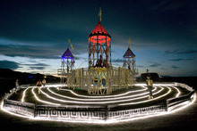 Take Dean Quada's Labyrinth Infinitum. The 47-foot by 25-foot clean wooden structure was this year's main effigy and took months to plan and weeks to build. An eternal walkway wraps infinitely in an ascending and descending figure eight.
